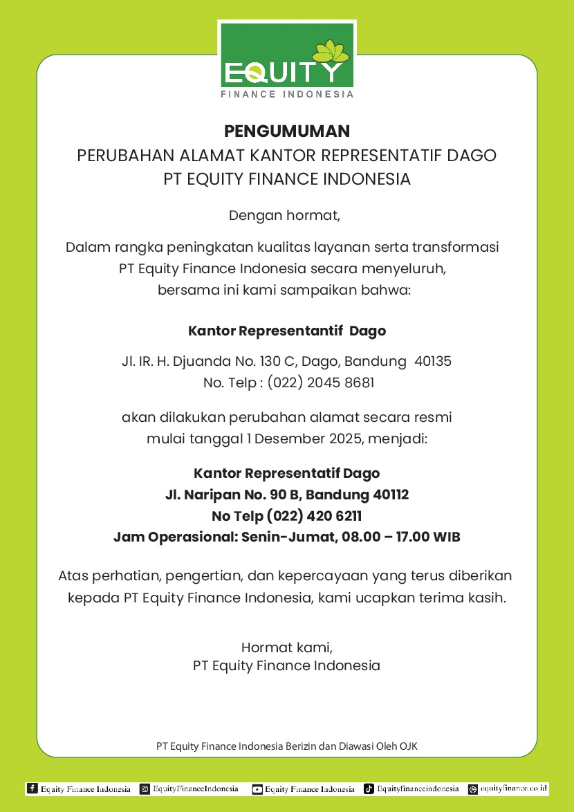 Perubahan Alamat Kantor Representatif Dago PT Equity Finance Indonesia